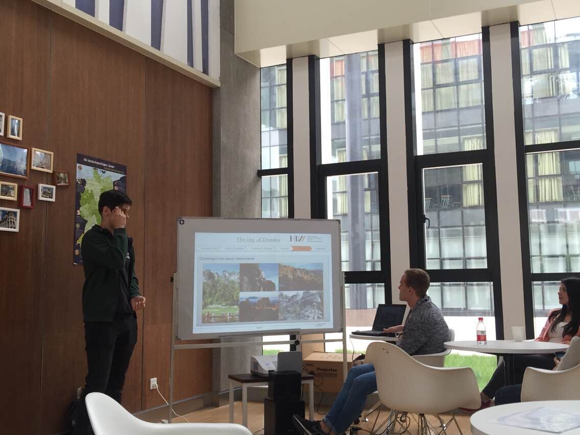 4月24日下午,来自德国德累斯顿工程和经济应用技术大学(Hochschule für Technik und Wirtschaft Dresden)的交流团到访快活影院 I-Cubic咖啡吧,并与快活影院 学生进行交流互动。