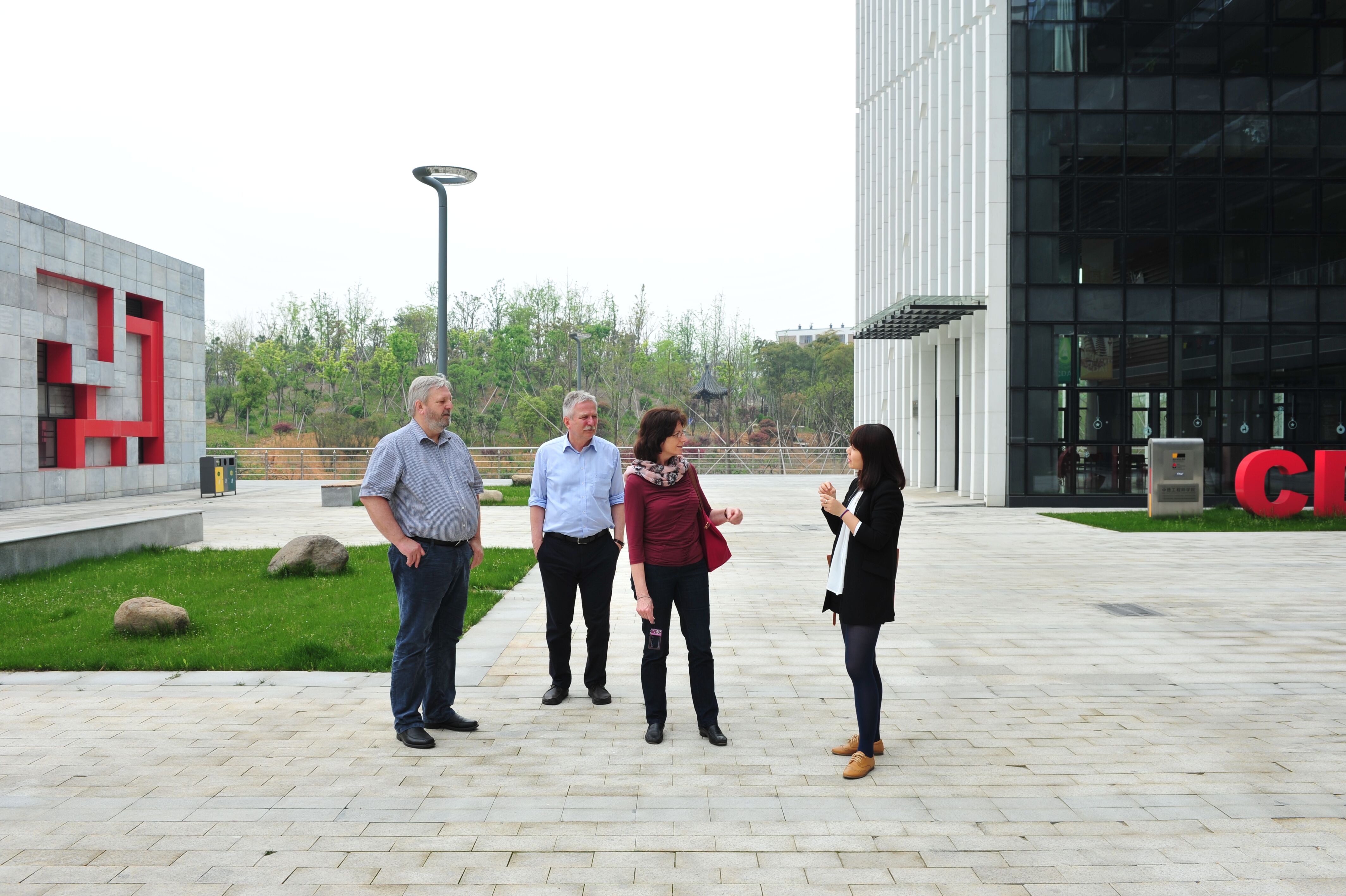 2015年4月18日,来自德意志学术交流中心土木工程专业的两位评估专家Löns女士、Maurial先生以及合作院校吕贝克应用科技大学副校长Litz先生一行,在快活影院 土木工程专业负责人文献民老师的带领下,莅临参观了浙江科技学院安吉校区。当天他们察看了快活影院 办公室、学院学生专业教室及以及I-Cubic咖啡吧等学院设施。参观过程中,他们盛赞安吉校区风景优美,是学习的好地方。对于学院I-Cubic咖啡吧努力创造外语学习环境的举措,也表示了肯定。