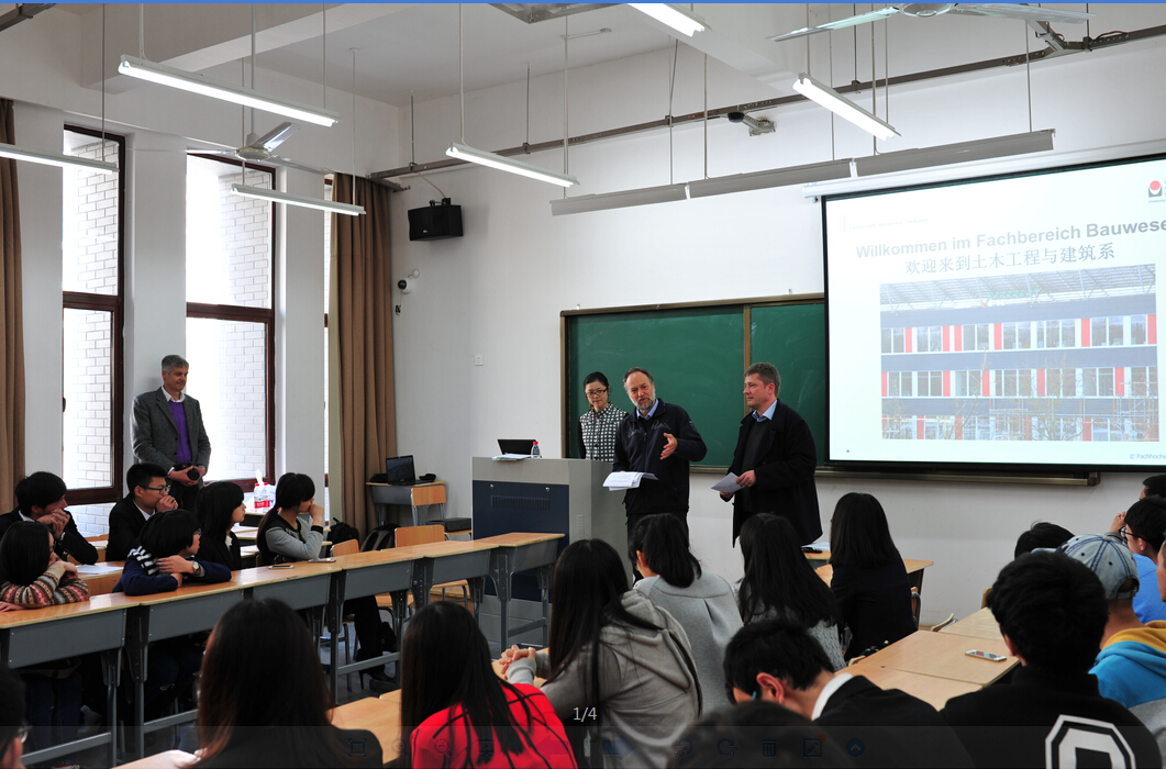 3月28日上午10点,吕贝克应用科技大学的三位教授Grottker, Schall和Emig先生来到浙江科技学院美丽的安吉校区,在夏建中院长、土木工程专业负责人文献民教授的陪同下,与CDAI土木工程专业的同学们进行了亲切交流,并做了关于专业内容和就业方向的报告。