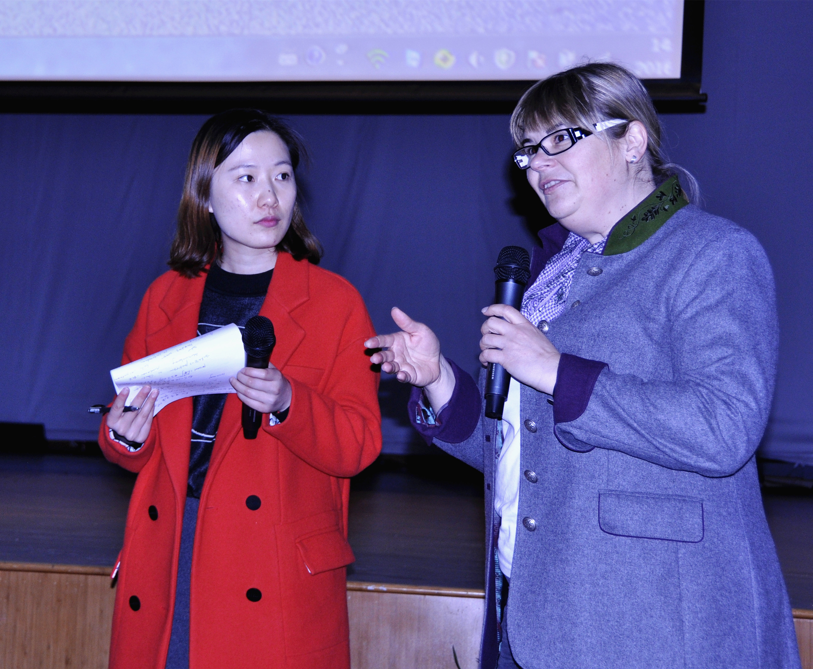 柯尔希教授就电气专业学习、实习、就业等问题进行发言。他鼓励大家掌握扎实的专业知识和德语,积极参与到企业实践中,提高自身的竞争力。随后的提问环节,多名同学运用德文、中文等就自身的困惑提出疑虑。柯尔希教授对大家的语言能力表示肯定,并热情地答疑解惑。来自德国的Frau Schneider 也为同学详细解答了实践与就业等大家关切的问题。快活影院 徐梦阳老师担任现场翻译。