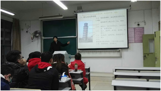 讲座中,王教授首先介绍了基础的位置及其重要性。分析了当今常见地基基础灾害产生的原因可分为主客观两方面。并详细的列举了6种常见地基基础灾害和事故的类型。一一举出历史存在的各种事故实例,为同学们生动形象的表述了施工过程中各种不当造成的严重后果。讲座最后,王教授为同学们提出了日后工作上需要的注意点。