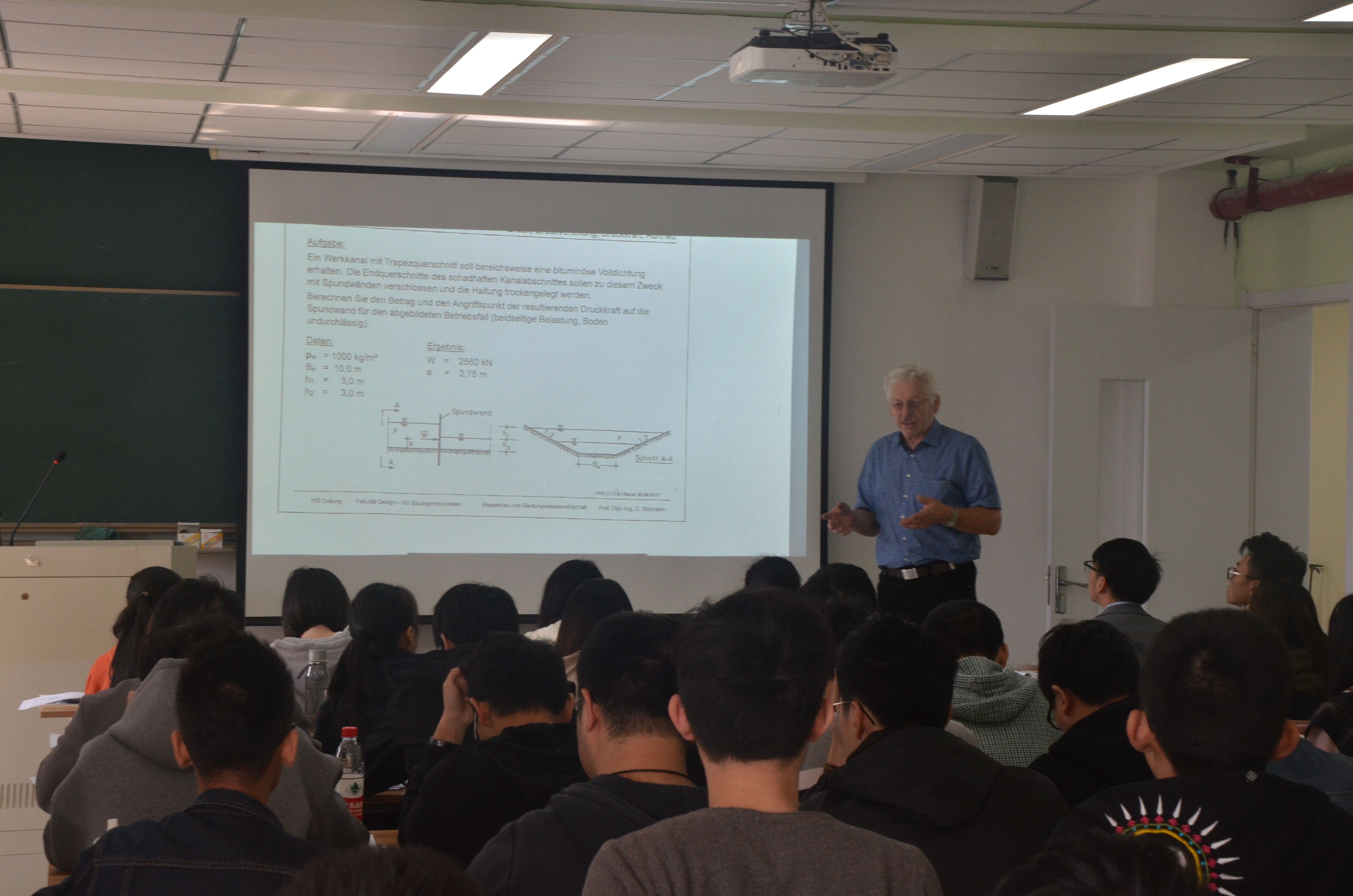 10月23日上午,来自德国科堡应用科技大学的迪特尔•舒兹曼教授开始为快活影院 15级土木的同学讲授为期两周的《流体力学》课程。这是15级土木专业的同学们第一次经历的德方教授集中授课,同学们非常重视这次集中授课,部分同学在暑假就花时间查询整理了该门课程的相关德语专业词汇,以便于更好地理解这门课程。