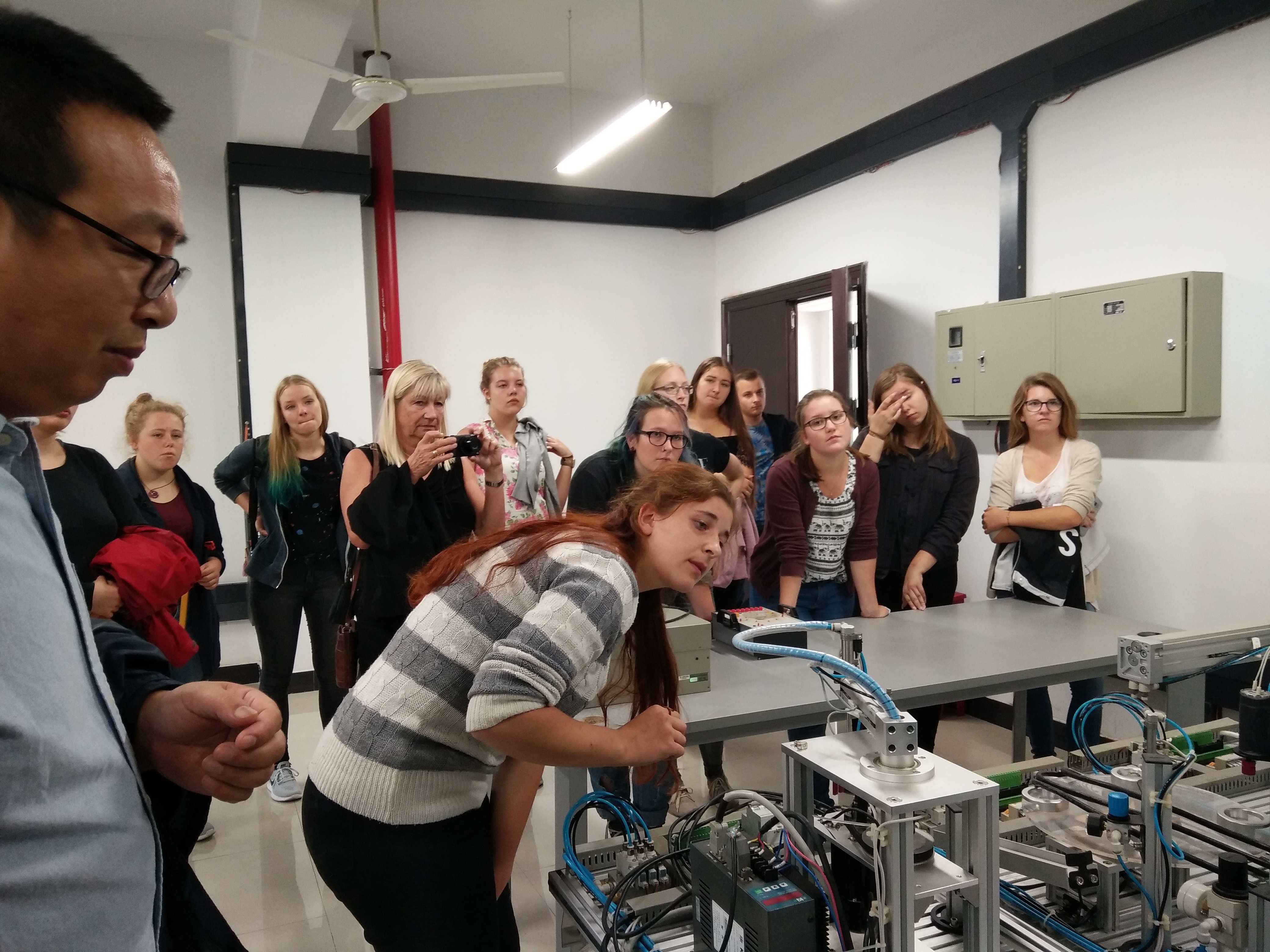 10月13日下午,快活影院 实验室工程师杨志卫带领学生代表团参观电气及其自动化专业的实验室,德国学生对自动化技术产生非常浓厚的兴趣,部分学生甚至主动参与设备演示与讲解。之后,快活影院 实验室工程师沈潇扬带领学生团参观土木专业的沥青实验室,向大家解释设备的运行方式和原理。最后,由快活影院 外事秘书吴一婷带领学生代表团参观中德合作馆,向德方代表团展示了我校中德合作历程和合作成果,参观期间德方教师和学生提问了很多关于学校专业设置、学生宿舍、实验室规模等问题。本次交流为快活影院 接收德国学位生打下了良好的基础。