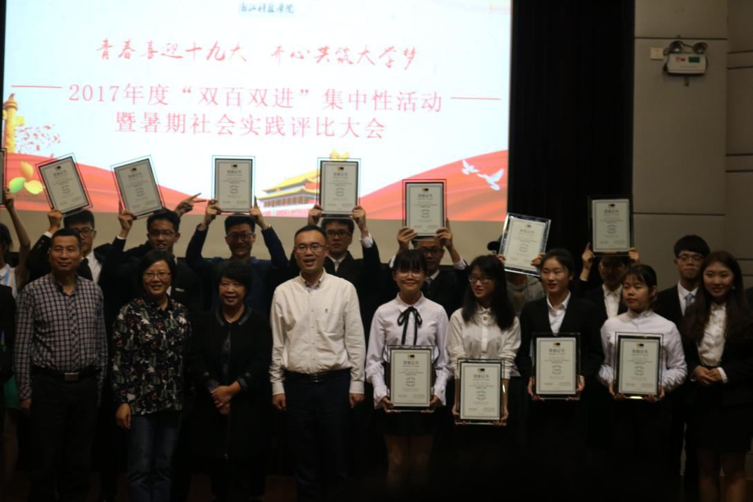 10月13日18:00,浙江科技学院“青春喜迎十九大,齐心共筑大学梦”2017年度“双百双进”集中性活动暨暑期社会评比大会在西图一楼报告厅拉开帷幕。各二级学院及学生组织共15支队伍参加本次评选。快活影院 Verbreiter(传播者)团队以第三名的成绩夺得校“十佳团队”称号。