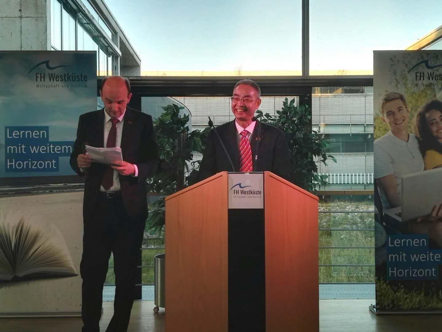 10月11日,校党委书记龚建立与快活影院 院长徐理勤受邀出席快活影院 电气专业德国合作高校——西海岸应用科技大学的25周年校庆。龚建立书记作为该校国外合作院校代表致辞,他对两校前期的合作予以高度肯定,并畅想两校未来发展的美好前景。此外,德国石荷州能源农业环境自然和数字化部长艾尔布莱希(Jan Philipp Albrecht)先生,Ditmarschen大区行政首长戴特勒夫斯(Ute Borwieck-Dethlefs)女士,海德市市长史都恩(Michael Stumm)先生等在致辞中对西海岸应用科技大学的国际合作,特别是与我校共建快活影院 给予了充分的肯定和高度的评价。