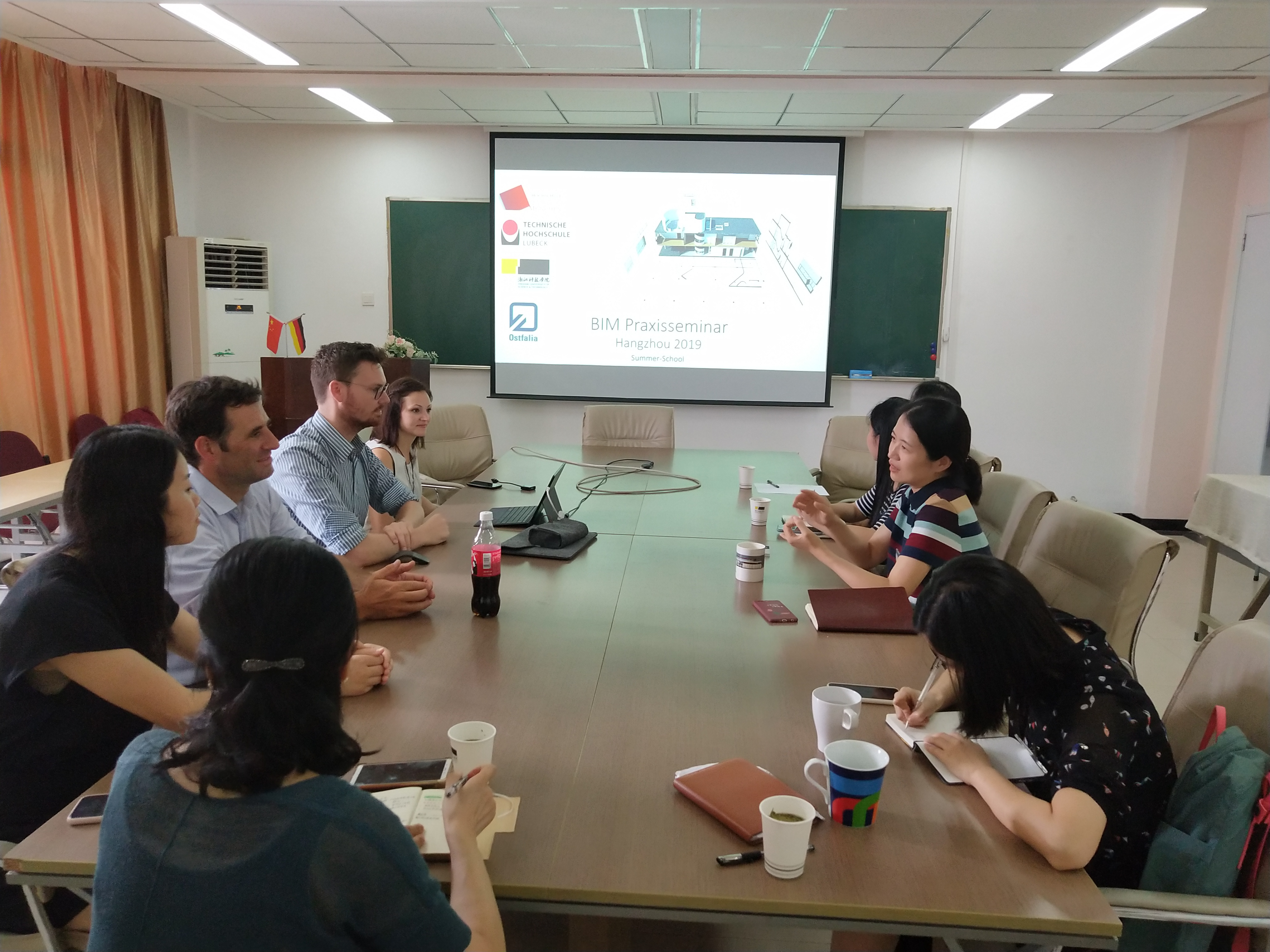2019年9月5日,慕尼黑应用科学大学土木工程专业Jungwirth教授与他的两位助手Andre Strotmann、Hannah Wiesenfeld一起与快活影院 全体土木教师开展了BIM研讨会。双方对BIM在各自院校教学中的应用进行了介绍与交流,对于如何更好地让学生掌握BIM基础知识及相关应用进行了探讨。双方表示,以后将定期举行这样的研讨,互相促进BIM技术在项目教学和毕业设计中的应用。建工学院土木专业三位教师受邀参加了研讨会,介绍了其在教学中BIM技术的应用情况和参加全国BIM竞赛的经验体会。