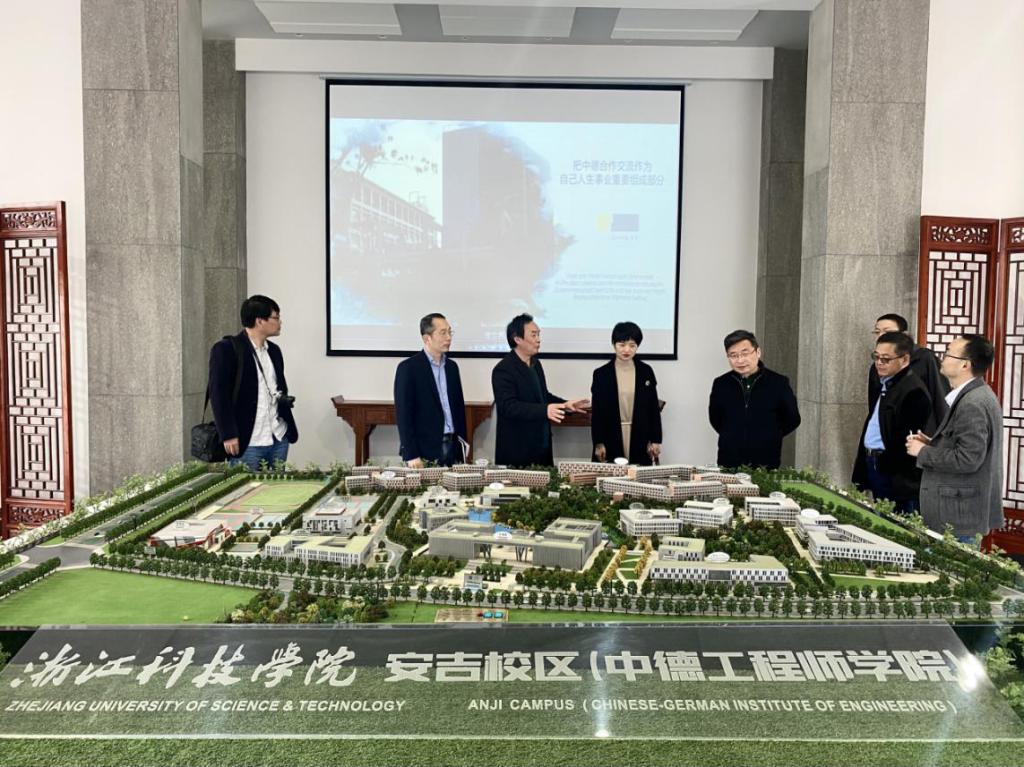 刘发明副书记带领来访人员参观了校史馆,介绍了浙江科技学院的发展历程和大事件。随后,薛文副院长带领来访人员参观了学院展厅,向大家介绍了学院的成立背景、内部治理体系、专业建设、人才培养体系、教学改革、师资队伍建设、文化品牌的创立、外部资源的争取和投入以及辐射影响能力等等。学院专业建设的突破、教学改革的进展、人才培养的成果、师资队伍建设的成效等给对方留下了深刻的印象。