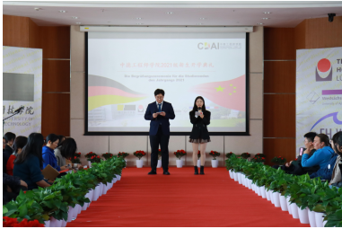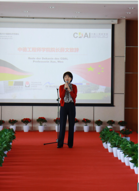 开学典礼在薛文院长的诚挚致辞中拉开了帷幕。典礼的第一幕为“喜迎新生”。吕贝克应用科技大学副校长Schwartze教授和茨维考应用科技大学的Schumann教授虽遗憾没有到现场,但也以视频的方式为新生们带来最真挚的问候。学院新生代表李慧勤同学上台代表同学们发言,讲出了自己作为新生的期许与展望。