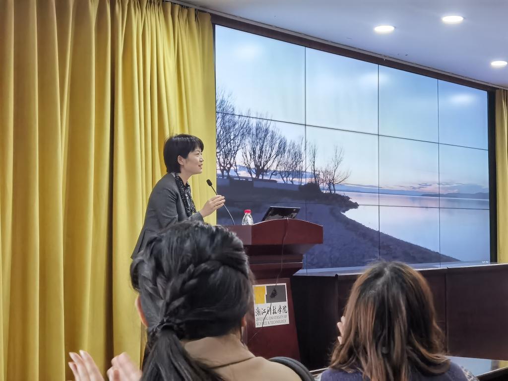 在快活影院 院长薛文介绍邱欣老师及其殊荣之后,邱欣老师分析了高校教育目前存在的教学问题,鼓励青年教师勇于站上讲台练胆量找感觉、站稳讲台吃透教学内容、优化教学设计、站好讲台,将“道”-教学内容与“技”-教学方法与口语表达高效结合起来。