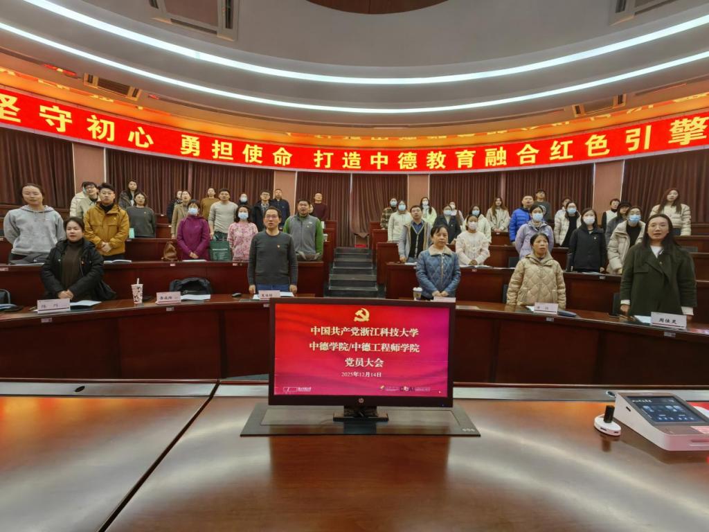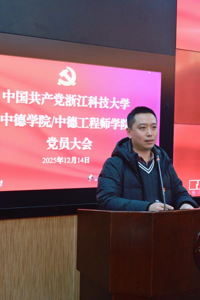 20251214,中国共产党快活影院 中德学院/快活影院 党员大会在庄重而热烈的氛围中隆重召开。学院全体正式党员参加会议,校纪检监察室周佳灵同志到会监督指导。大会由学院党委副书记李成炜主持。