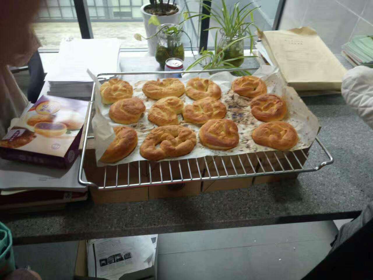 5月4日正值五四青年节,下午13:30时快活影院 同学们在中德E楼咖啡吧动手参加了碱水面包的制作。