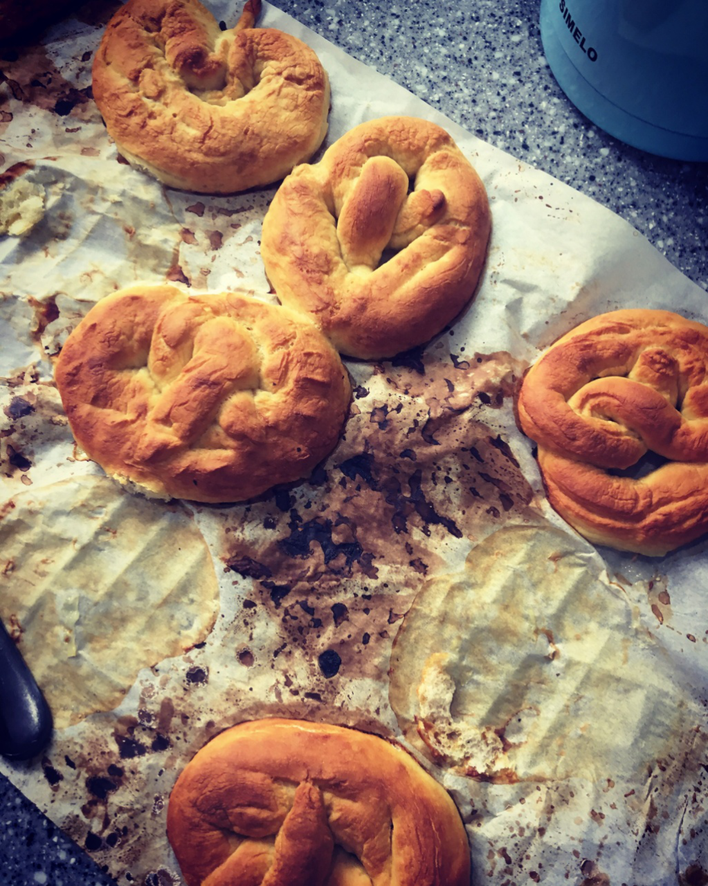 冷冻定型、碱水浸泡、烤箱烘焙……等流程后,新鲜的碱水面包出炉