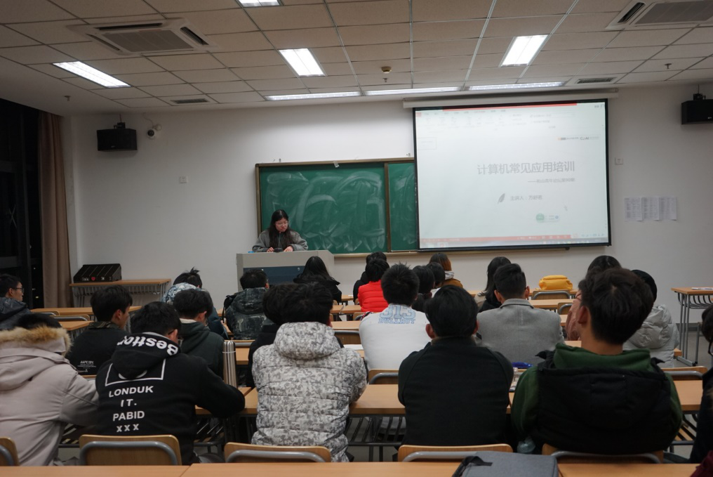2018年12月7日18:00,快活影院 同学们相聚中德楼D楼311,聆听由16电气方舒茗学姐带来的主题为“计算机常见应用培训”的学习报告。方舒茗学姐精通Office办公软件、Photoshop、板绘、文字排版等,曾担任学院学生会宣传部部长,在学校以及校外多个组织中担任美工,现在一家游戏公司中担任美工(兼职)。