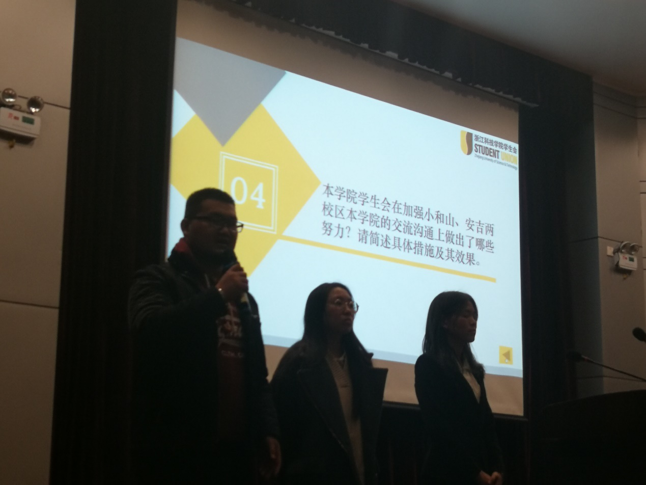 本次现场评比分为限时五分钟的现场展示以及两分钟的现场答辩两个环节。现场展示中,快活影院 学生会分别呈现处展CDAI的现况、制度、活动、成就和未来这五个方面,强调了快活影院 会在强化思想引领、凸显德国元素、开展文体活动等方面开展的活动,极大地丰富了学生的大学生活。同时,安吉学生会成员们纷纷以视频的形式表示了对院会的期待与祝福。现场答辩环节,快活影院 代表深刻阐述了学院在两校区工作方面的努力,精彩的发言赢得了在场观众的热烈掌声,得到了校方的认可。