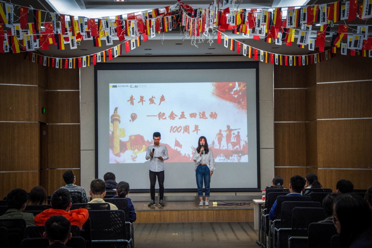 为纪念五四运动100周年,快活影院 团委学生会于2019年4月28日安吉B4报告厅举行“青年发声——新时代、新青年”诗歌朗诵比赛,来自学院17、18级 共10组同学以青春的名义吟咏出当代青年的爱国之情。