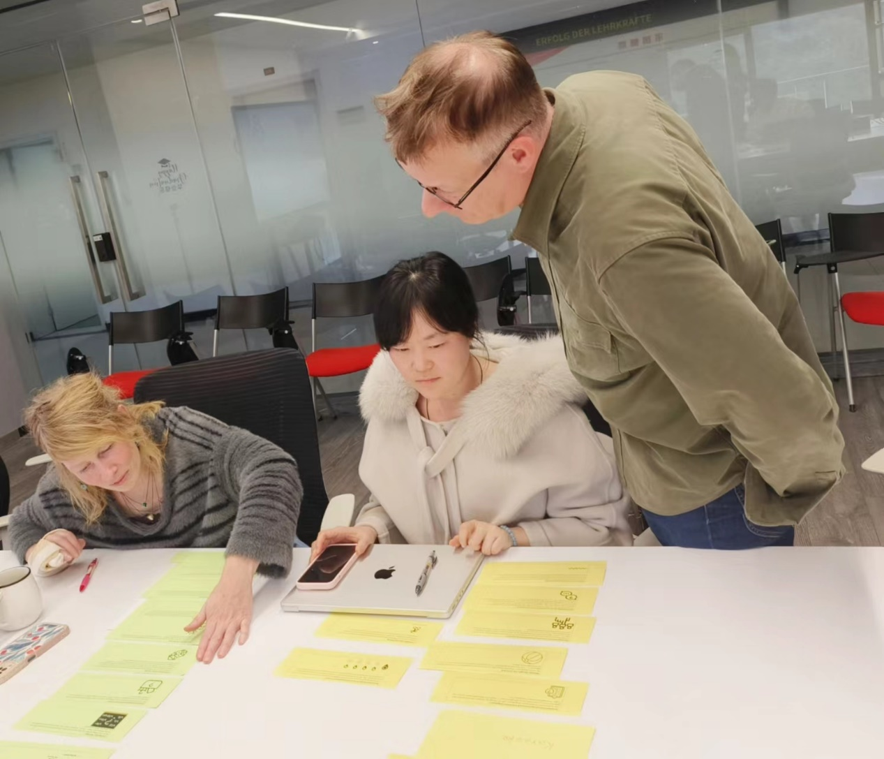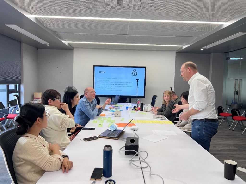2023年11月23日下午,快活影院 德语语言中心学术主管Sven Hänke博士为中心全体德语老师举办了主题为“如何使基于教材的德语课更加生动有趣”的沙龙。Hänke博士通过介绍“基于教材的德语课”的概念及要素,引发德语老师对“有趣的德语课的要素构成”的思考。活动中,参与老师以小组为单位对如何更好地将一些合适的交互型练习运用到课堂中进行了热烈研讨。