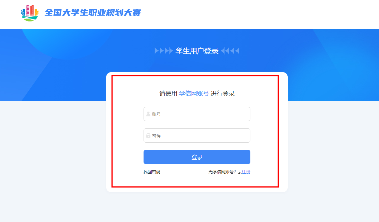 参赛选手平台主页 -登录-选择学生用户身份-使用学信网账号登录。