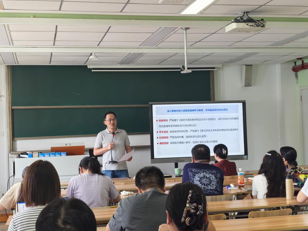 会议重点围绕中央八项规定精神进行深入学习,对前期学习教育工作进行了阶段性总结,并就深化作风建设作出具体部署。会议要求,全体教职工要重点抓好四个方面工作:一是加强师德师风建设,严格执行《新时代高校教师职业行为十项准则》及学校师德负面清单制度;二是强化学术诚信建设,规范科研经费使用管理;三是严明纪律规矩,坚决杜绝违规违纪行为;四是深化课程思政建设,将社会主义核心价值观有机融入教育教学全过程,推动作风建设常态化长效化。