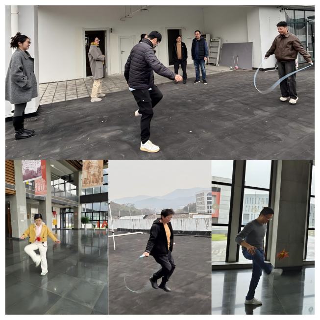 活动现场,老师们精神饱满,热情高涨,在冬日的暖阳下,共同体验踢毽子和跳绳的乐趣,享受健康的生活方式。活动结束后,学院工会还为每位参与者准备了纪念品,以表彰老师们的积极参与和付出。